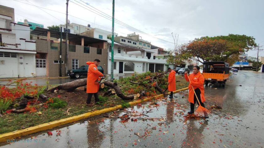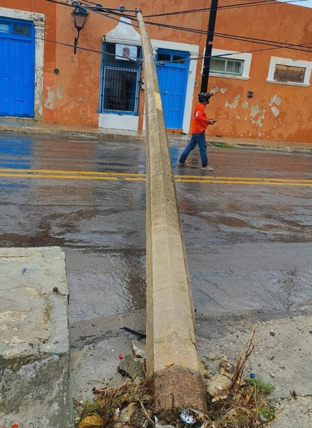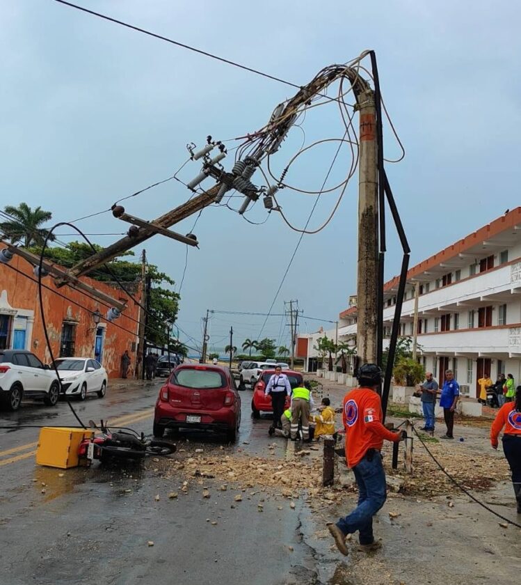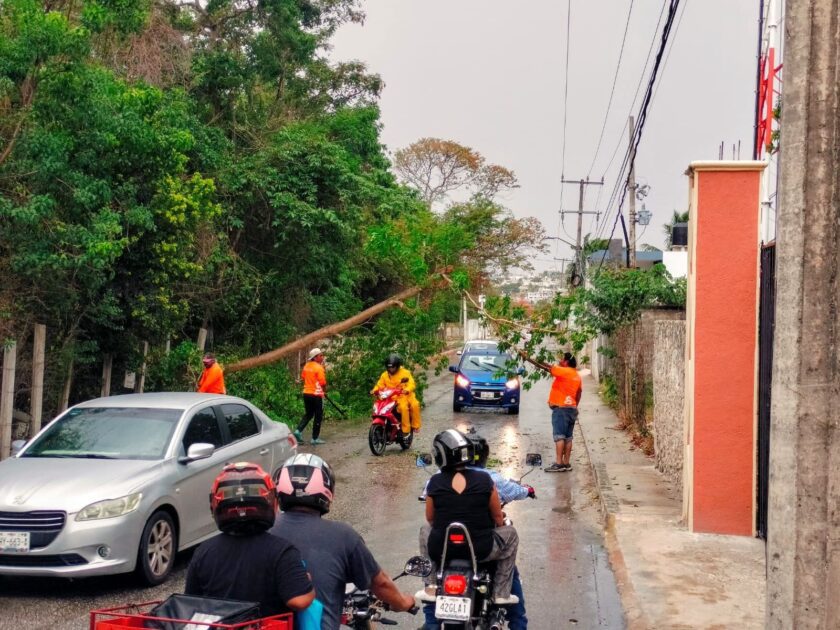SIETE ÁRBOLES CAÍDOS Y POSTES DERRIBADOS, SALDO DE LOS FUERTES VIENTOS EN CAMPECHE