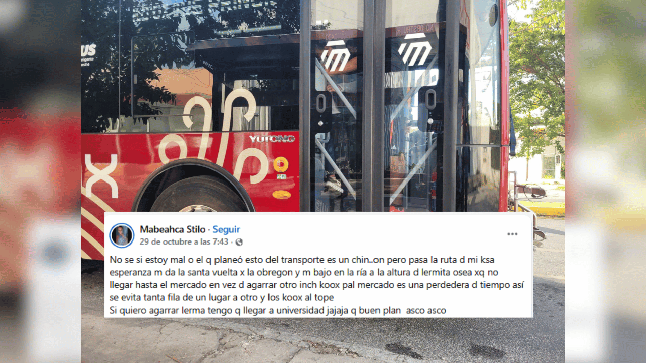 Por medio de sus redes sociales, el usuario identificado como Mabeahca Stilo criticó las nuevas rutas del sistema Ko’ox al exponer que la ruta de al Esperanza, donde vive, tras darle una “santa vuelta por la Obregón” lo deja en La Ría, a la altura de La Ermita, y pregunta: “¿Por qué no llegar hasta el mercado en vez de agarrar otro inch Ko’ox?. Si quiero ir a Lerma tengo que llegar a la Universidad jajaja, qué buen plan, asco, asco”.