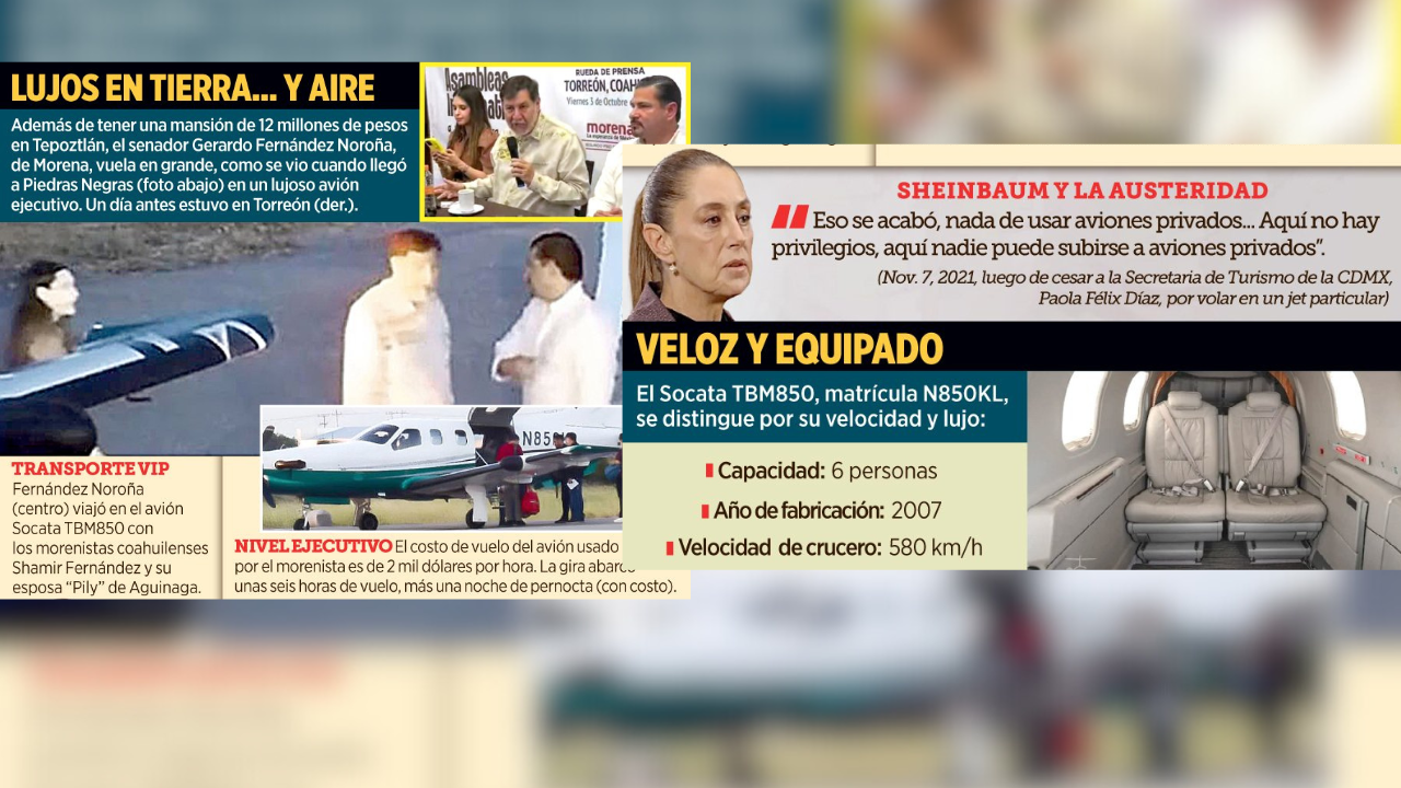 El senador Gerardo Fernández Noroña fue captado en fotos y video al abordar un avión privado de lujo a Coahuila para asistir a sus “asambleas informativas”, y de acuerdo con una investigación del Diario Reforma, viajó en un Socata TBM850, valuado en 2 mil dólares por hora.