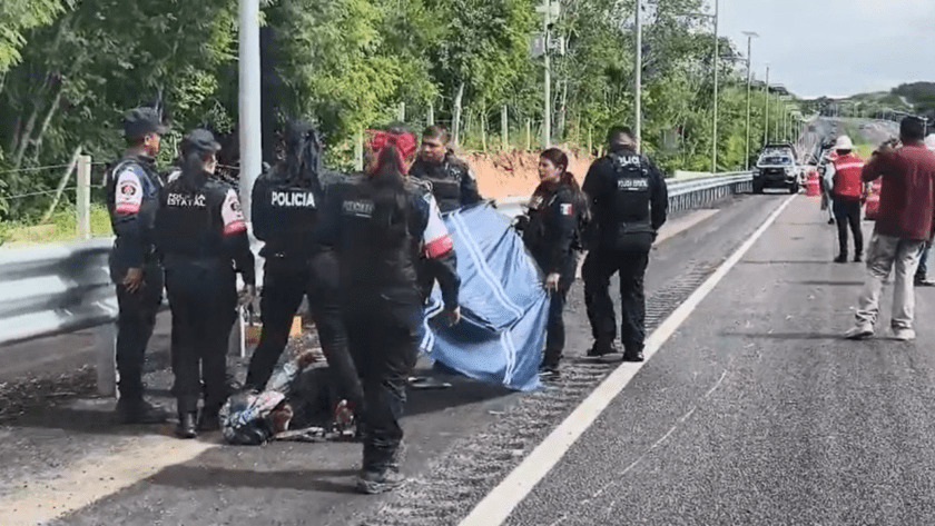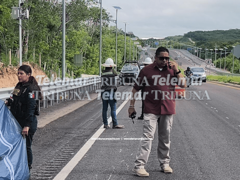 Llamó la atención que una camioneta del Tren Maya que recogía gravilla por la zona del accidente, se acercó y aparcó en sentido contrario para “apoyar” en el abanderamiento.