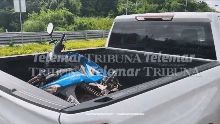 San Francisco de Campeche.- Luego de que una motociclista derrapó en el periférico Pablo García y Montilla, cerca del kilómetro 16, al subsecretario de Participación Ciudadana, Prevención del Delito y Atención a Víctimas de la Secretaría de Protección y Seguridad Ciudadana del Estado de Campeche, Víctor Contreras Ramírez, no le importó que por ser tramo federal la Guardia Nacional debe tomar conocimiento del accidente y pedir una grúa, ya que subió la moto a la góndola de la camioneta oficial a su cargo y se la llevó.
