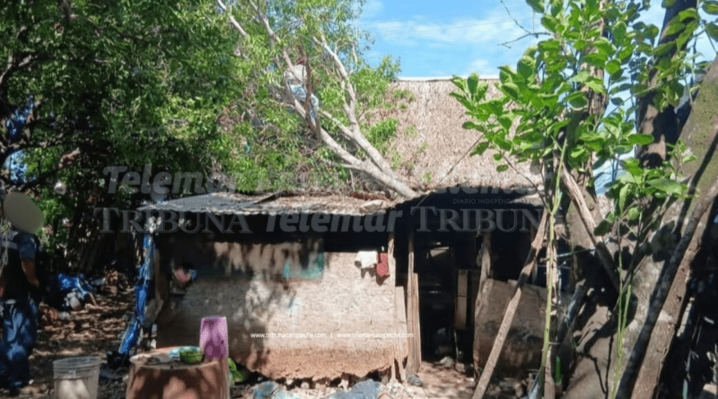 ¡SUSTO! CAE ÁRBOL Y CASI APLASTA HUMILDE VIVIENDA EN TENABO; NO HAY HERIDOS