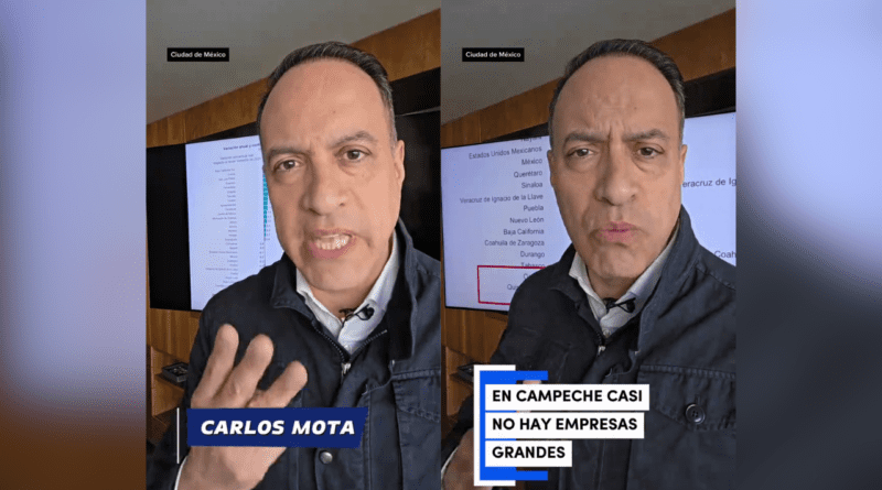 ES CAMPECHE EL PEOR ESTADO EN MATERIA ECONÓMICA: CARLOS MOTA; “DATOS DEL INEGI REVELAN QUE CAYÓ EN 11.8% HASTA EL TERCER TRIMESTRE DEL 2025”