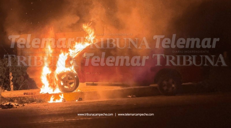 SE INCENDIA CAMIONETA DE DOBLE CABINA TRAS CHOCAR CONTRA PARADERO DE COMBIS