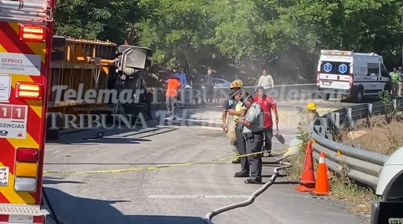 Por conducir a exceso de velocidad y sin las debidas precauciones, el operador de un tráiler que se dirigía hacia la autopista Campeche-Champotón perdió el control al intentar incorporarse al carril de subida, lo que provocó que la pesada unidad volcara sobre su costado izquierdo. El vehículo transportaba decenas de cajas con pollos, las cuales quedaron regadas sobre la vía. Al lugar llegaron elementos del Heroico Cuerpo de Bomberos y de la Secretaría de Protección y Seguridad Ciudadana (SPSC), quienes resguardaron la zona luego de que varias personas intentaran rapiñar la carga.