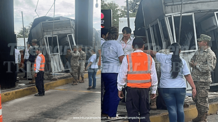 Ciudad del Carmen.- Durante la mañana de hoy miércoles se registró un fuerte accidente en una de las casetas de cobro del puente Zacatal, cuando un tráiler se impactó contra la estructura, provocando un gran susto entre automovilistas y personal del lugar.