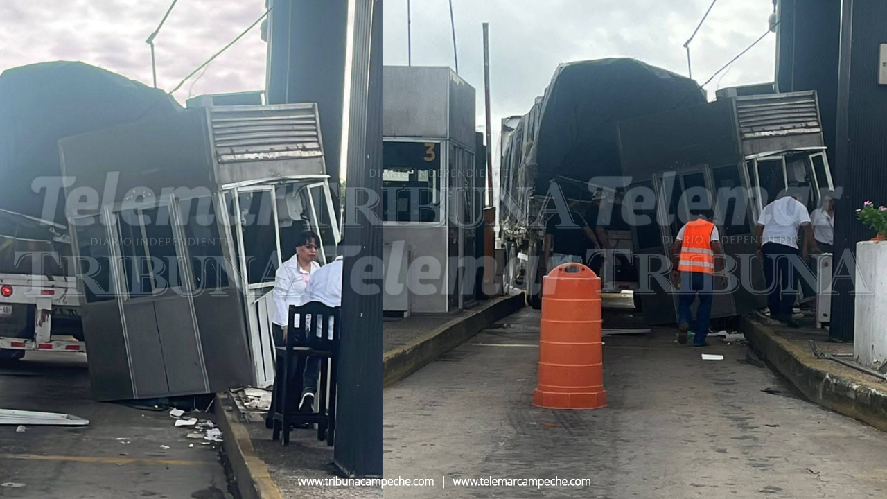 Ciudad del Carmen.- Durante la mañana de hoy miércoles se registró un fuerte accidente en una de las casetas de cobro del puente Zacatal, cuando un tráiler se impactó contra la estructura, provocando un gran susto entre automovilistas y personal del lugar.