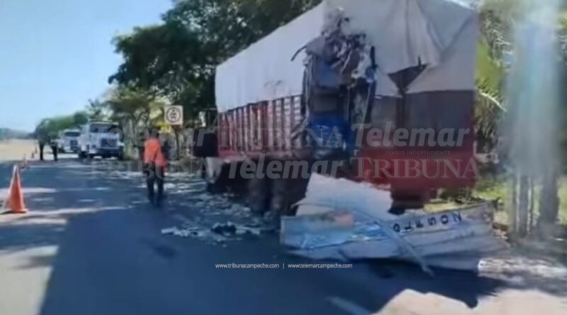Dzitbalché.- A la altura del kilómetro 77 de la carretera federal Campeche–Mérida, tramo Dzitbalché, un tráiler se salió de la carretera y quedó entre la maleza tras impactar por alcance a un camión torton.