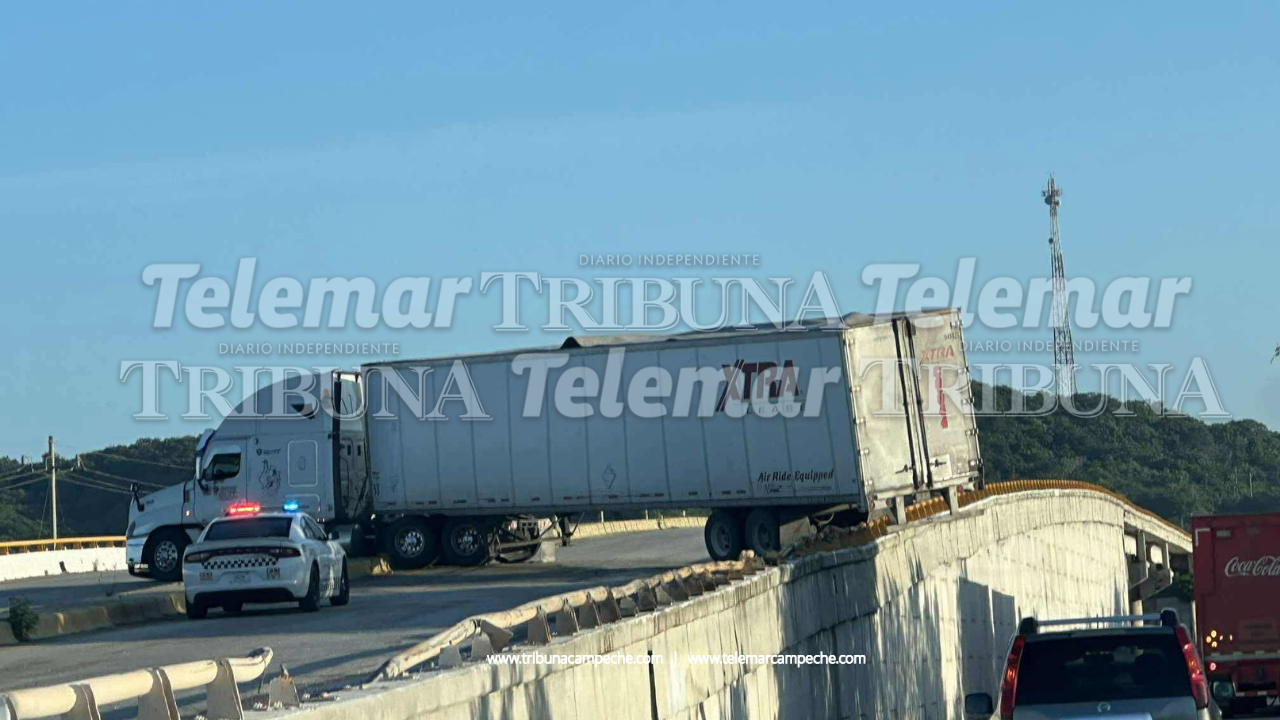 Un tráiler se accidentó esta mañana en la carretera Villamadero–Champotón, a la altura del puente de Haltunchén, generando un cierre total en ambos sentidos de la circulación en el kilómetro 159+500 de la vía Ciudad del Carmen–Campeche.