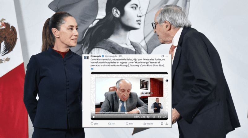 México .- Ante la pifia cometida por el doctor David Kershenobich un día antes, que se volvió video viral al referirse como Huachinango (nombre del pescado) a uno de los Municipios afectados y como Costa Rica (en lugar de Poza Rica) a otro, la presidenta Claudia Sheinbaum conminó hoy martes al secretario de Salud a no mencionar los Municipios afectados durante su intervención en la conferencia matutina.