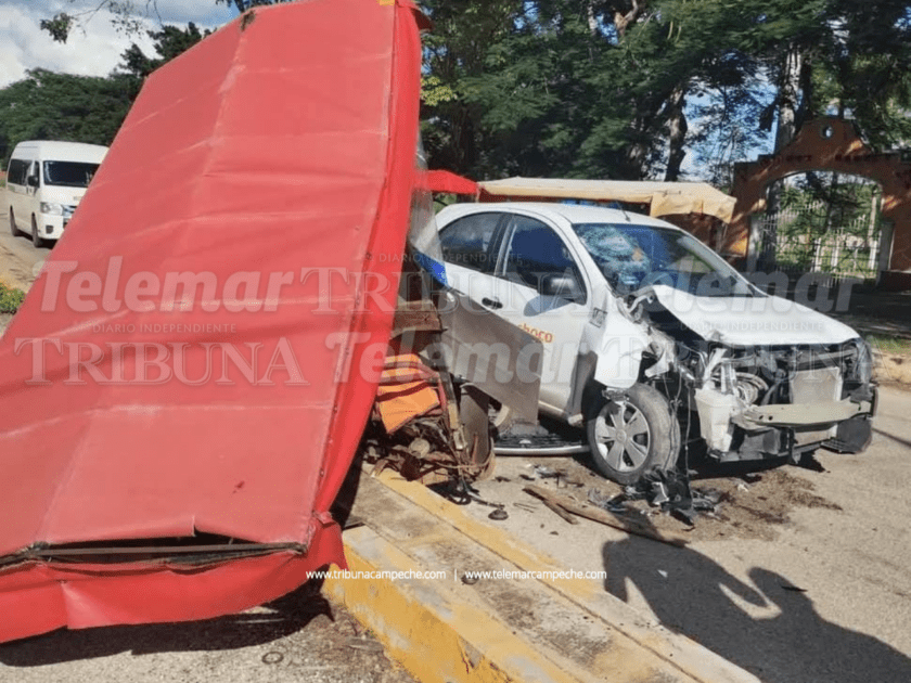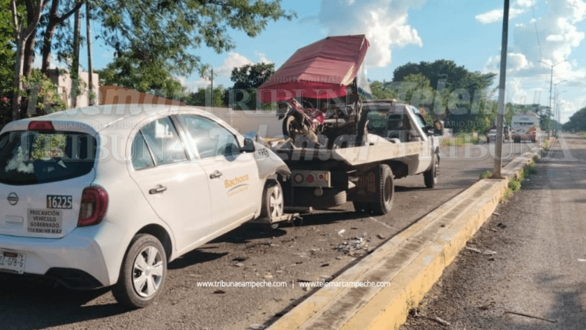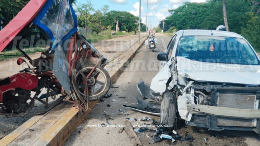 Hecelchakán.- En la avenida San Cruz-Hecelchakán, un choque de frente entre un mototaxi y un automóvil de la empresa Bachoco dejó saldo de tres personas lesionadas, entre ellos un menor de edad, quienes tuvieron que ser trasladadas al hospital IMSS-Bienestar.