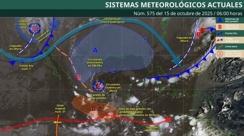 En los próximos días, el frente frío continuará en el noreste del mar Caribe, favoreciendo la llegada de nublados y lluvias hacia Quintana Roo. Para el fin de semana, una nueva vaguada sobre la península podría generar tormentas dispersas en Yucatán y Campeche.