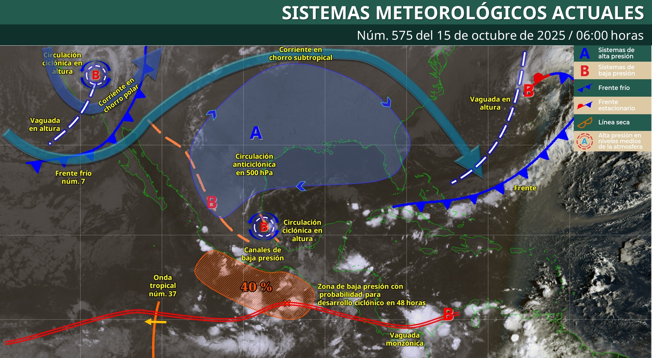 En los próximos días, el frente frío continuará en el noreste del mar Caribe, favoreciendo la llegada de nublados y lluvias hacia Quintana Roo. Para el fin de semana, una nueva vaguada sobre la península podría generar tormentas dispersas en Yucatán y Campeche.