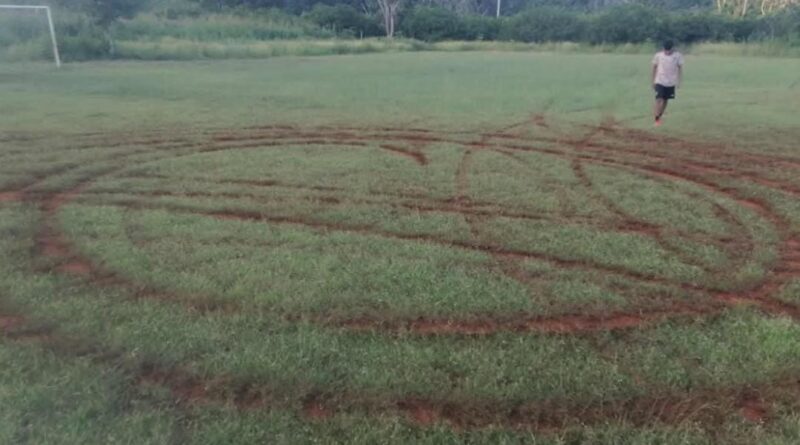 Tinún, Tenabo.- A través de sus redes sociales, deportistas de la Junta Municipal de Tinún evidenciaron su enojo por los daños al pasto del campo de fútbol ocasionados por el ingreso y circulación en distintas direcciones o rutas de uno o más vehículos.