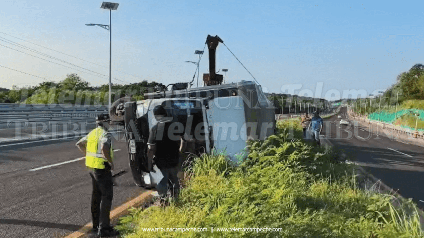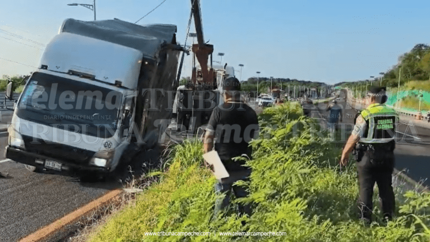 La unidad acabó sobre su costado izquierdo y con la caja destruida en el camellón central, tras lo cual automovilistas avisaron al número de emergencia.