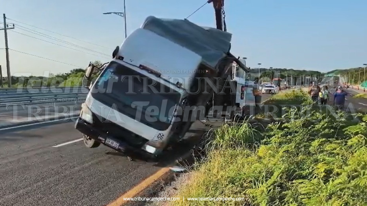 La unidad acabó sobre su costado izquierdo y con la caja destruida en el camellón central, tras lo cual automovilistas avisaron al número de emergencia.